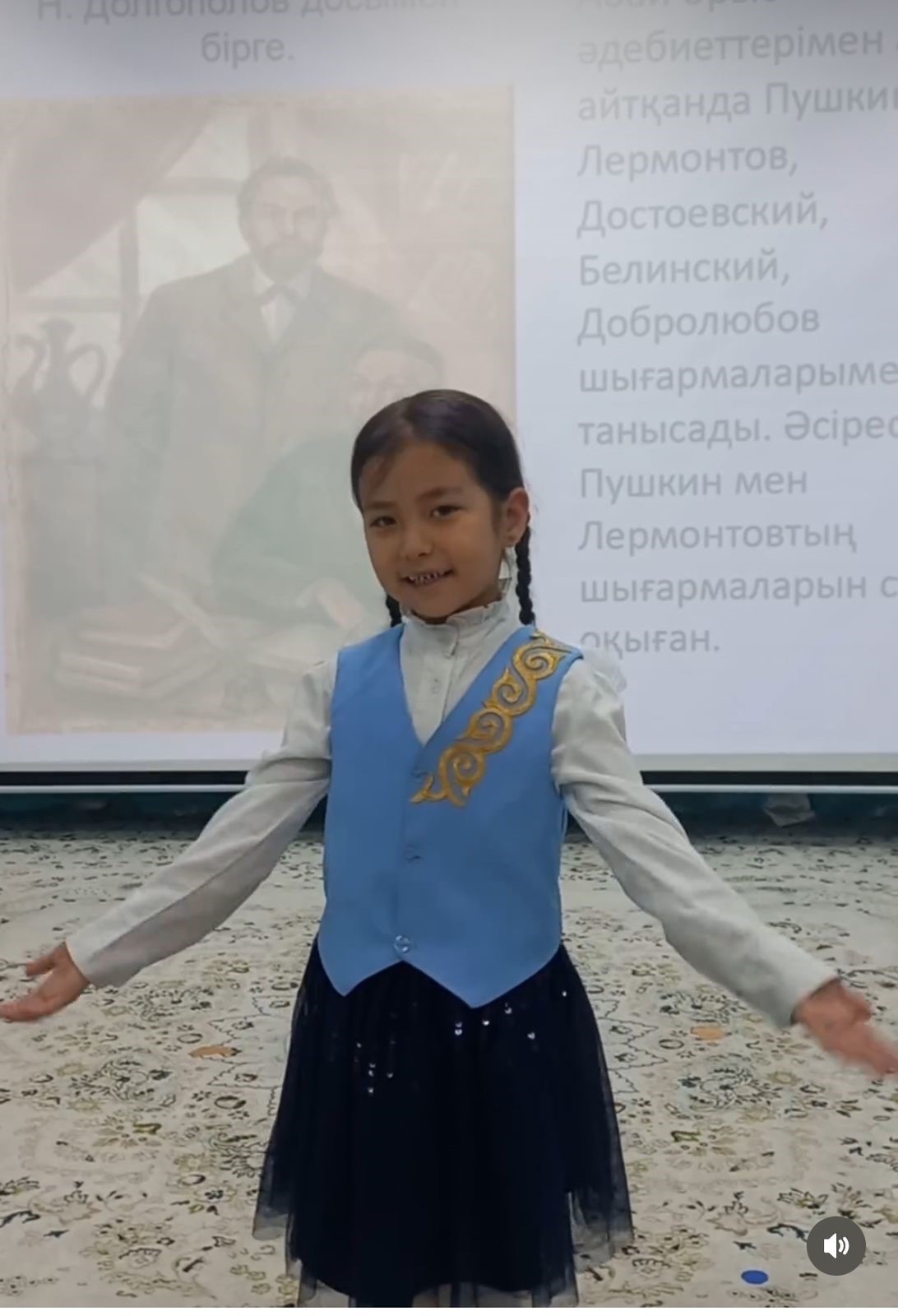 "Абай-дана, Абай -дара қазақта!" атты тақырыбында балаларды Абай Құнанбаевтың шығармаларымен жақынырақ таныстырып, халқымыздың дана ақыны, ғұлама ойшылы, сазгер Абай Құнанбайұлының өлеңдері мен әндерінің таралуын насихаттау, бүгінгі ұрпақтарының Абай мұрасына қызығушылығын арттыру, оқып – білуге, тани түсуге ынталандыру.