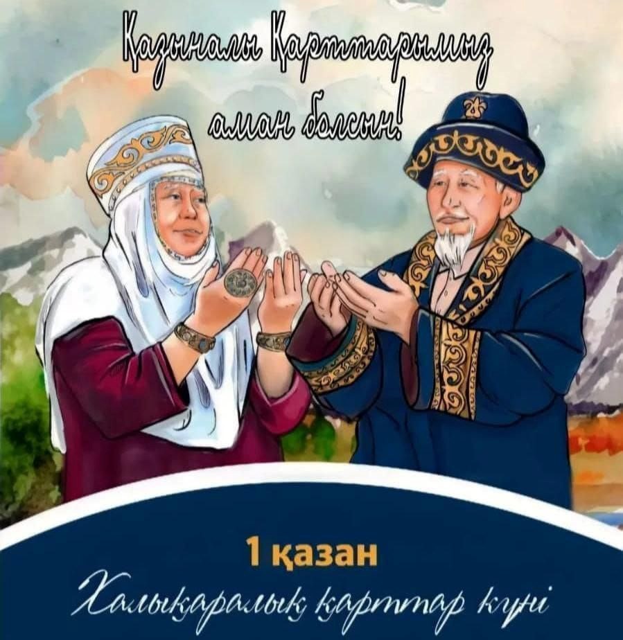 Сіздерді Халықаралық қарттар күні мерекесімен шын жүректен құттықтаймыз! Уақыт пен ұрпақты жалғастырған, күздің салқын күндерінде жылуын шашқан бұл мереке үлкендерді құрметтеп, қамқорлық көрсететін халқымыздың ежелгі дәстүрін насихаттайды. Қарты бар үйдің – қазынасы бар. Бізге және өсіп келе жатқан өскелең ұрпаққа сіздердің өмір жолдарыңыз өнеге, еңбек жолдарыңыз үлгі. Сіздер данагөй тұлға, саялы бәйтерексіздер! Адам ұрпағымен мәңгі жасайды. Бүгінгі күн – кешегінің жемісі, ертеңгінің өркені. Бүгінгі ұрпақ үшін жасаған бар жақсылықтарыңыз үшін шынайы алғысымызды білдіреміз. Баршаңызға мықты денсаулық, сәттілік пен ұзақ ғұмыр, отбасыларыңызға бақыт, береке, бірлік тілейміз! Мерекелеріңіз құтты болсын!